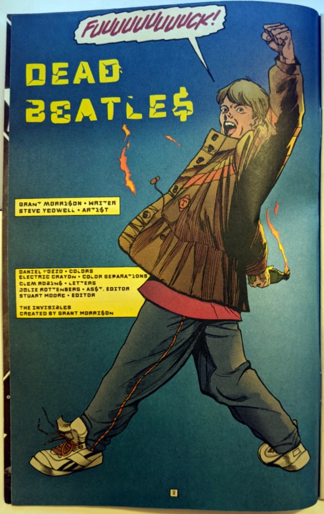 I own the first five issues of The Invisibles. I remember reading them and not understanding a blessed thing. I re-read the first issue before writing this and I still don’t understand what the deal is. I can understand the angst of one of the main characters, Dane McGowan, and that he is being recruited but that’s about it. I don’t understand why there is a grenade on the cover, why a young John Lennon and Paul McCartney show up, or who and what the heck King Mob is. The art is good and not nearly abstract as the cover might indicate and if I didn’t find the story so boring or confusing I might have given it more of a chance than I did. As it is I only bought five issues and after looking at them now I still don’t care enough to give the series another chance and really go down that rabbit hole.