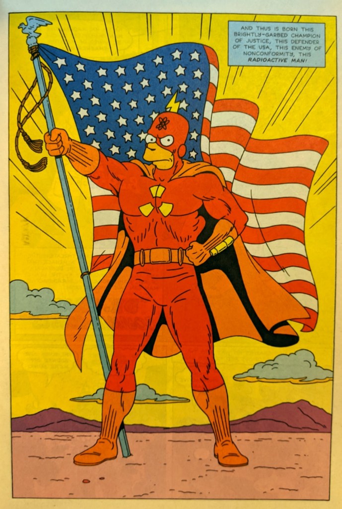 Overall, the parody of the comic featured in the Simpson cartoon is both clever and, at the same time, just another comic released at a time when gimmick covers were all the rage and number one issues were plentiful. Despite all that I think, as a Simpsons fan, it is fun to say I own my own copy of Radioactive Man number one, and that I don’t have to share it with Bart, Milhouse or Martin. Maybe I should get it graded. Would that make it even more meta?