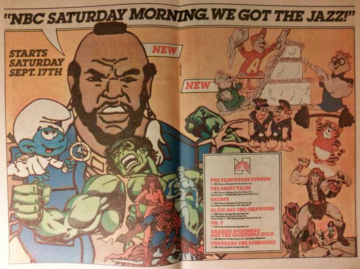 NBC – 1983 – Ah, to be 10 again, eating a bowl of honeycomb cereal, watching Mr T, The Hulk, The Smurfs and Thundarr the Barbarian! It doesn’t get much better than that.