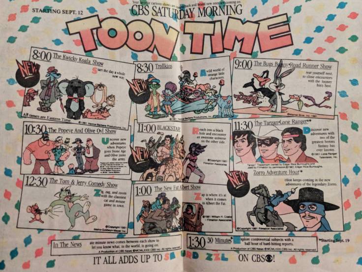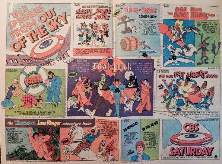 1980 line up, still before the time I would really be able to enjoy hours of cartoons on Saturday’s. Drak Pack is the one I’m most interested in though.
